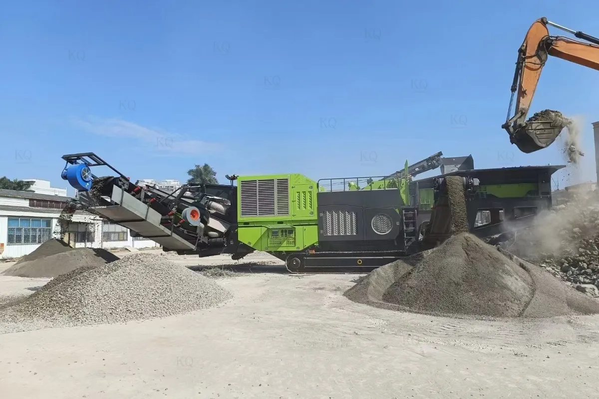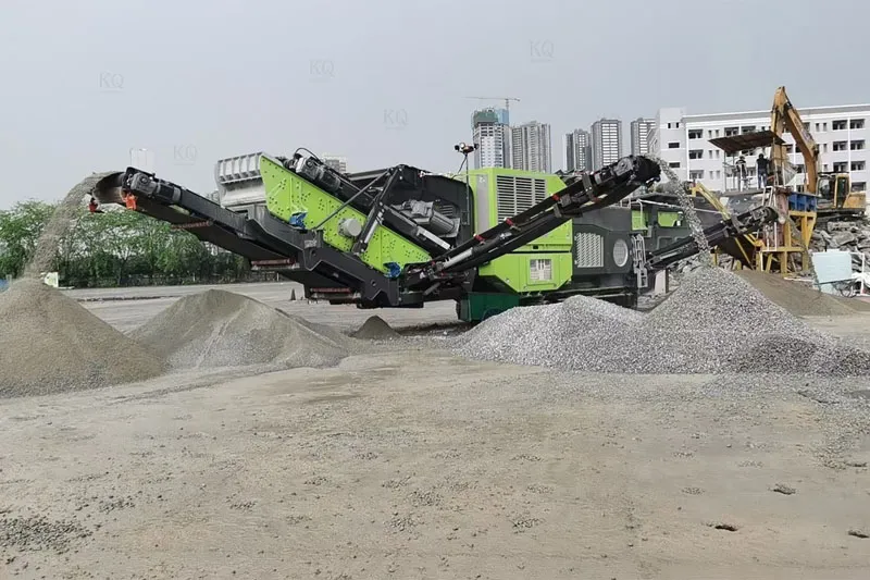 mobile crushing plant can be near the construction site, demolition of construction waste can be converted into construction materials that can be utilized twice at any time and anywhere (equipped with an iron remover, to protect the machine at the same time can be classified and processed iron and concrete), which is both environmentally friendly and efficient.