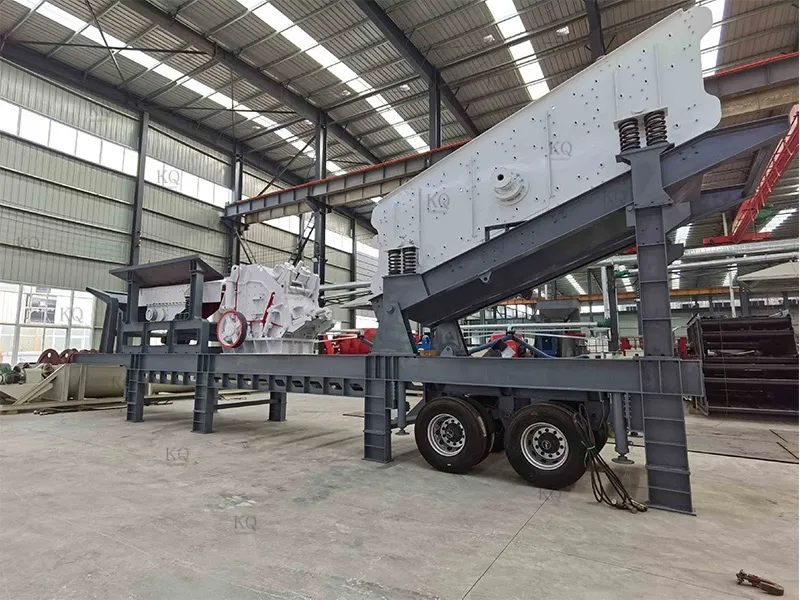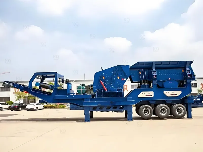 The tire mobile impact crushing plant is designed for efficient crushing and fast transfer, equipped with full hydraulic tire chassis, four-wheel independent steering + hydraulic outrigger stabilization system, self-propelled movement without trailer (speed 1.8km/h), 15 minutes to complete the parking - crushing mode switching, suitable for construction sites, quarries, and other flat sites. The core impact crusher adopts heavy-duty double rotor design (speed 450-750rpm), equipped with high chromium composite plate hammer (life expectancy ≥ 6,000 hours), with a maximum feed size of 600mm, capacity of 200-650t/h, finished product size of 10-50mm infinitely adjustable, and a cubic rate of ≥ 92%. Intelligent control system monitors the rotor balance, bearing temperature and motor load in real time, automatically matches the gap of impact plate and feeding frequency, and triggers the shutdown protection within 5 seconds under abnormal working conditions, reducing the failure rate by 45%. The modular quick-disassembly structure supports 15-minute replacement of the plate hammer, the integrated reclaim circulation system improves the crushing efficiency by 20%, and the -25℃ low-temperature preheating and 50℃ forced air-cooling ensure all-weather stable operation. It is suitable for granite, concrete recycled aggregate and other high hardness materials, and the power consumption of single machine is as low as 1.4kW-h/ton. It can be equipped with electromagnetic iron remover or three-stage screening module to realize the integrated operation of “crushing-screening-removing impurities”, which can increase the integrated production capacity by 35%, and shorten the return on investment cycle to 12 months.
