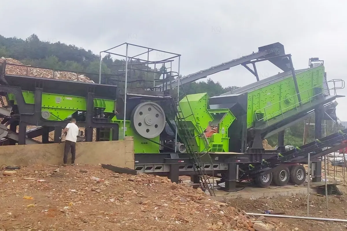 Equipped with self-propelled hydraulic tire chassis (moving speed of 1.8km/h) and folding legs, the plant can be quickly deployed in 15 minutes on flat sites such as quarries and urban demolition zones, without the need to rely on trailer towing.
